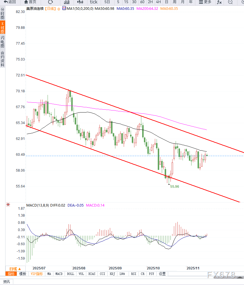 若油价跌破60美元关键支撑,短线可能进一步下探至58.5—59美元区域;反之,若能突破61.5美元压力,则有机会打开上行空间至63美元附近。