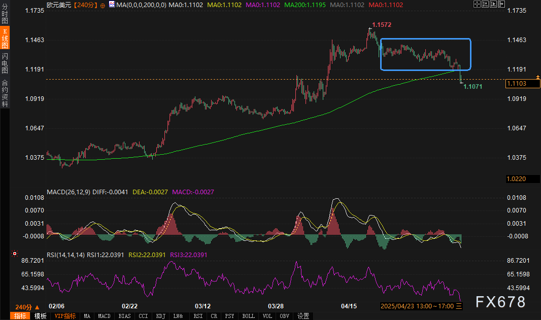 下方支撑:1.1050(3月低点)、1.1000(心理关口)