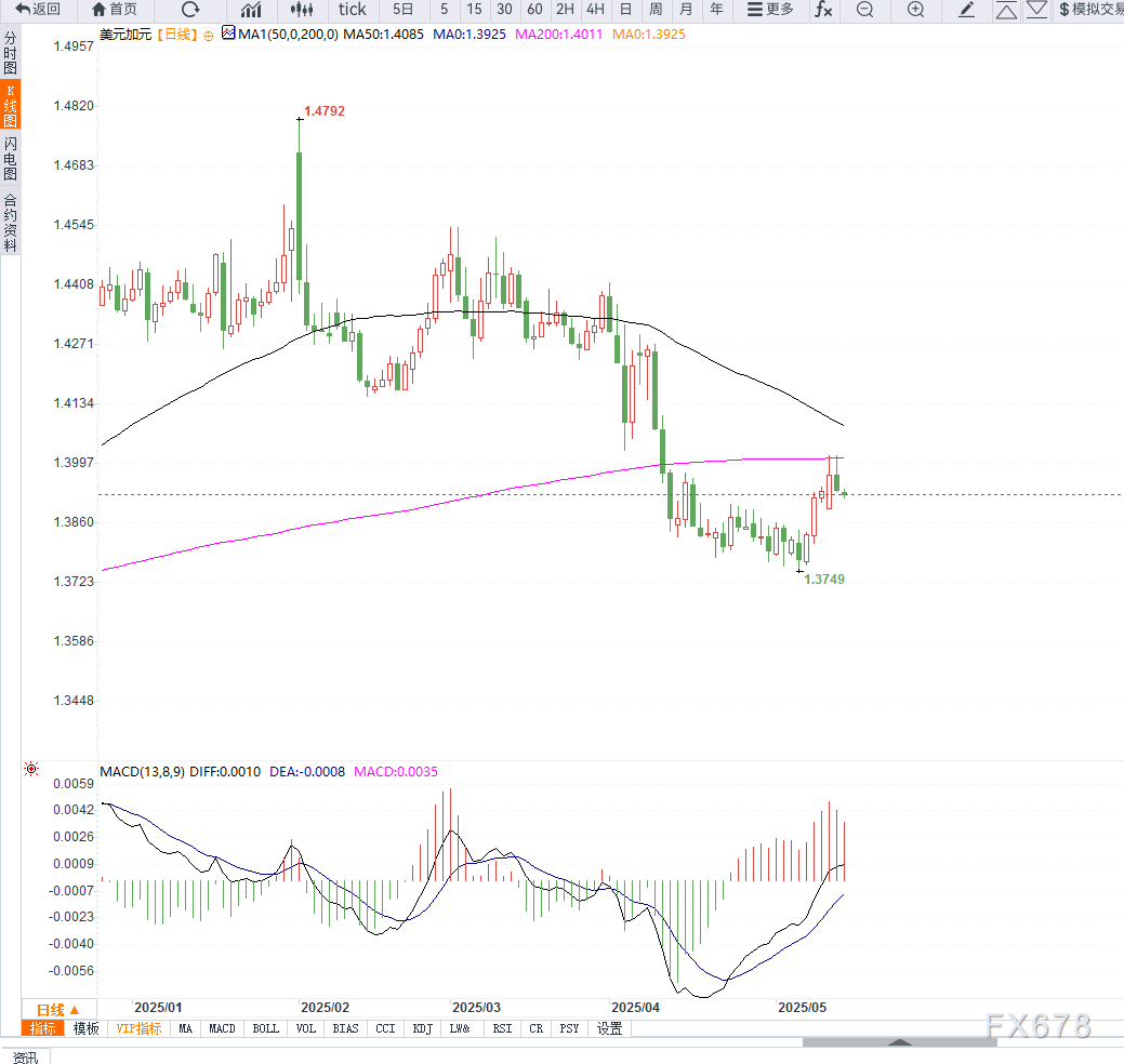 市场普遍预期2025年将有两次降息,这削弱了美元近期的涨势,使美元/加元自阶段高位下滑。