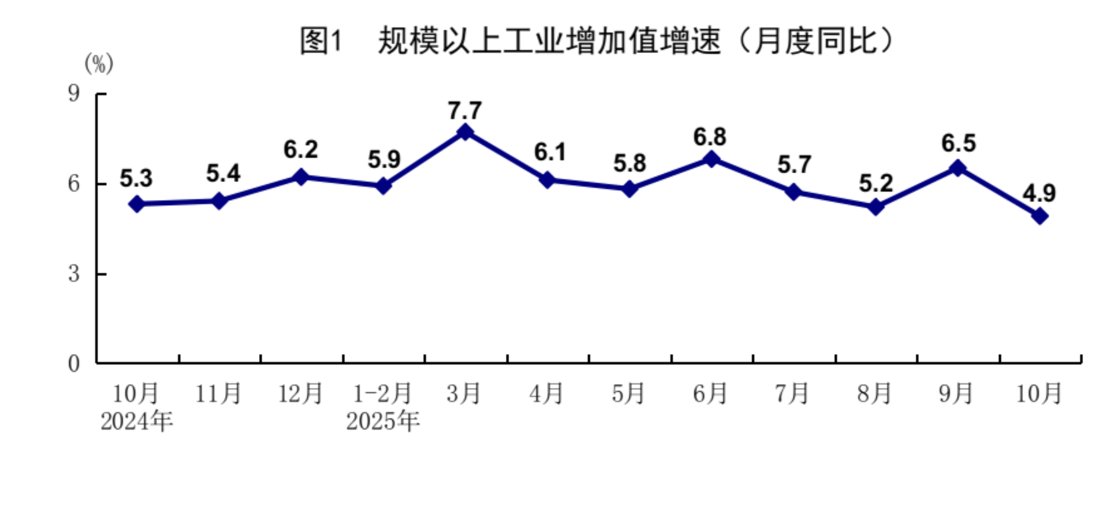 嘉盛官网:国家统计局:10月规模以上工业增加值增长4.9% 社会消费品零售总额增